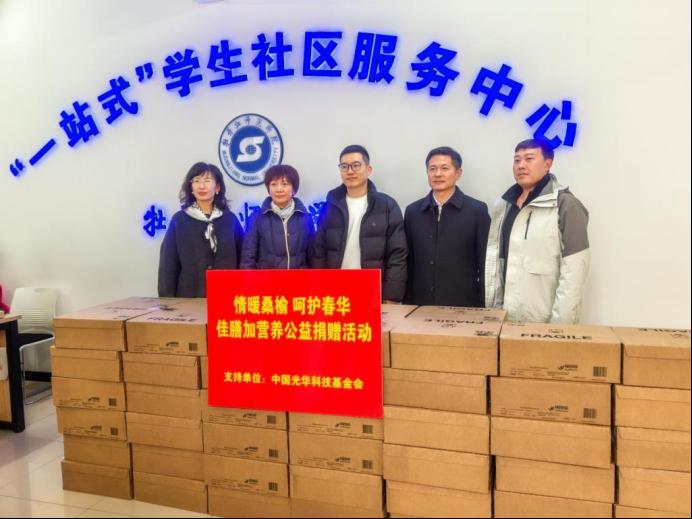 “新善”传温情,营养护春华。为切实关怀我校家庭经济困难学生,助力追梦学子在寒冷的冬日以更饱满的精力投入课堂学习、奔赴青春理想,在中国光华科技基金会的支持下,10月29日,学校在“一站式”学生社区服务中心发放“佳膳加”公益营养品。党委副书记陈海萍、佳木斯市义工联合会理事长韩鹏出席活动。
